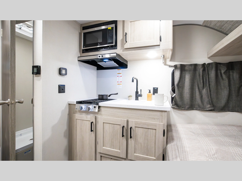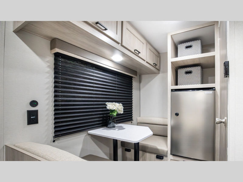 Sleeps 3 Slides 1 Black Water Capacity 30 gals Available Beds RV Queen Refrigerator Type 12V GE Stainless Refrigerator Size 10.7 cu ft Cooktop Burners 3 Shower Size 24" x 36" Number of Awnings 1 LP Tank Capacity 20 lbs Water Heater Type Tankless AC BTU 13500 btu Awning Info 17' Electric w/Multicolored LED Light Strip and Remote Axle Count 2 Number of LP Tanks 2 Shower Type Tub/Shower Combo Electrical Service 30 amp Similar Floorplans