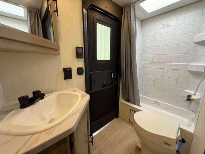 Sleeps 4 Length 25 ft 1 in Ext Width 8 ft Ext Height 10 ft 8 in Hitch Weight 579 lbs GVWR 7579 lbs Dry Weight 4665 lbs Cargo Capacity 2914 lbs Fresh Water Capacity 52 gals Grey Water Capacity 38 gals Black Water Capacity 28 gals Furnace BTU 20000 btu Available Beds RV King Refrigerator Type 12V Cooktop Burners 3 Number of Awnings 1 Water Heater Type Tankless AC BTU 15000 btu Awning Info 15' Full Length Power w/LED Light Strip Axle Count 2 Shower Type Tub/Shower Combo Solar Wattage 200 watts Similar Floorplans
