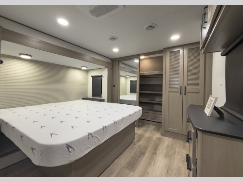 Sleeps 5 Slides 3 Length 32 ft 10 in Ext Width 8 ft Ext Height 12 ft 3 in Hitch Weight 1985 lbs GVWR 11995 lbs Dry Weight 10325 lbs Fresh Water Capacity 74 gals Grey Water Capacity 87 gals Black Water Capacity 47 gals Tire Size ST235/80R16RLE Furnace BTU 35000 btu Available Beds Queen Refrigerator Type 12V Refrigerator Size 16 cu ft Cooktop Burners 3 Shower Size 30" x 34" Number of Awnings 2 LP Tank Capacity 30 lbs Water Heater Type On Demand Tankless AC BTU 15000 btu TV Info LR 40" TV Awning Info 13' & 10'6" One-Touch Electric LED Axle Count 2 Number of LP Tanks 2 Shower Type Radius Electrical Service 50 amp Solar Wattage 370 watts Similar Floorplans