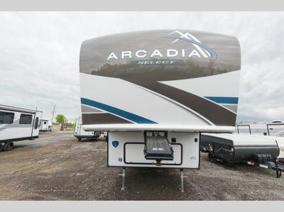 With any Arcadia Select fifth wheel by Keystone you will enjoy easy towability and at-home comforts at an affordable price! The laminated sidewalls with five sided aluminum superstructure will provide a strong foundation so you can enjoy your RV for years to come, plus a one-piece, heated and enclosed polypropylene underbelly means you can camp year around! And an upgraded Roto-Flex hitch pin with will make it easy to tow. Head inside to find tall slides for added space, seamless, pressed countertops, convenient underbed storage, and a large shower with a retractable door and skylight. These fifth wheels also include a Blade Pure A/C system, Girard on-demand tankless water heater, two 30 lb. LP tanks, and more utilities to make your camping experience run smoothly.