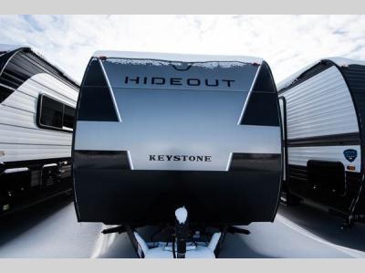 With any Hideout Sport travel trailer by Keystone you will enjoy simplified camping solutions that won't break the bank! Each model is constructed with a durable AlphaPly TPO roof membrane tinted safety glass windows, and an I-beam frame. There are power tongue jacks and heavy duty stabilizer jacks that will make it easier than ever to hitch up and go. An XL entry assist handle will also provide convenience, along with a power awning that will provide much wanted shade during the day. You will feel right at home inside with stylish decor, blackout night shades, and cozy bed with storage underneath!