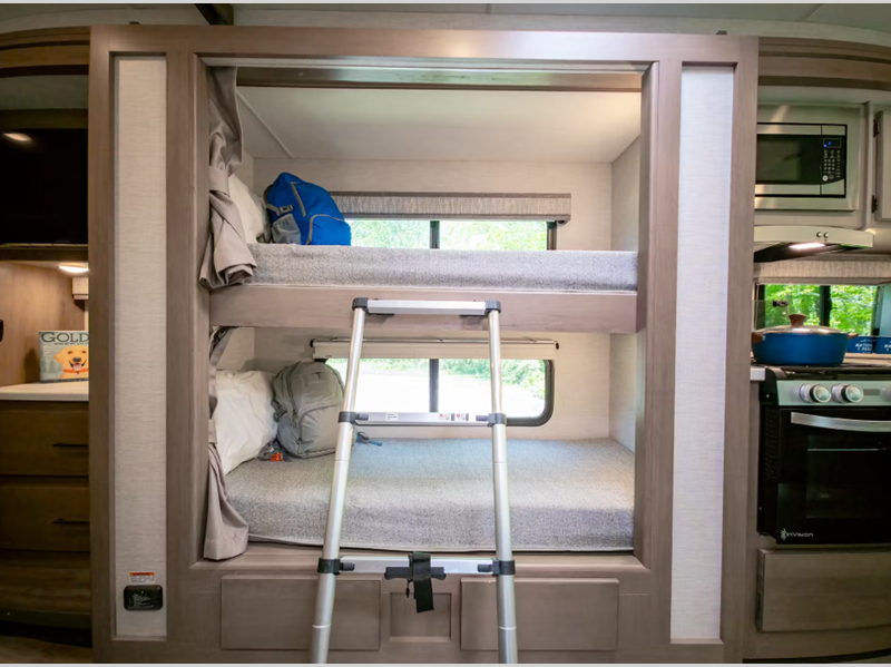 • Power Drop-Down Hide-Away Overhead Bunk with Cotton Cloud™ Mattress & Telescoping Bunk Ladder