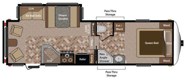Single Slide Sprinter Copper Canyon FW w/Rear Living Area w/Lounge Chairs & End Table, Air Bed Sofa/Dinette Slideout, 32" LCD TV, Double Kitchen Sink, 3 Burner Range, Refrigerator, Pantry, Step Up to Bed & Bath w/Neo-Angle Shower, Lav., Pass-Thru Storage, Private Toilet Area, Front Queen Bed w/Wardrobes Each Side, Overhead Cabinet, Wardrobe/Ent. Center & More.
