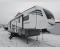 This fifth wheel is going to make an impression on anyone that steps foot inside or walks around the outside! From having a second entry/exit door into the rear bunkhouse and a main entry into the living and kitchen area, plus having an outside kitchen to make meals in the great outdoors, nobody will ever want to go home! The rear bunkhouse also includes a Versa queen bed plus two flip-down upper bunks, plus storage. The front bedroom gives you privacy from everyone and there is a walk-around queen bed, three wardrobes and a space prepped for a washer/dryer option. The full bathroom will keep everyone refreshed, and the inside kitchen has full amenities including an L-shaped counter. There is hidden storage behind the 40" LED TV with fireplace below.
