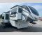 Five slide outs, a full bathroom with dual sinks, a half bath off of the kitchen, and a separate front living room and entertainment area are a few reasons you will enjoy your time spent in this fifth wheel! The separate kitchen is a dream with stainless steel appliances including a 24" residential oven, a pantry and hutch with counter space, a kitchen island plus a free-standing dinette slide with windows for great views. The entertainment center offers an LED Smart TV with a fireplace below and storage, and the dual opposing tri-fold sofas provide added sleeping space at night. The master bedroom includes a queen bed, LED TV and storage, plus space savings sliding doors that lead you to the rear full bathroom with dual sinks, linen storage, and space prepped for a washer/dryer option. You will find more storage throughout the fifth wheel in the overhead cabinets, the entry closet, and even your shoes have a spot under the interior steps leading to the front living/entertainment room. The exterior has several storage choices as well including a pass-through compartment for fishing poles and such, plus the unique sliding tray in the rear allows you to bring along larger items such as camping tables, portable grills, golf clubs, totes and more.